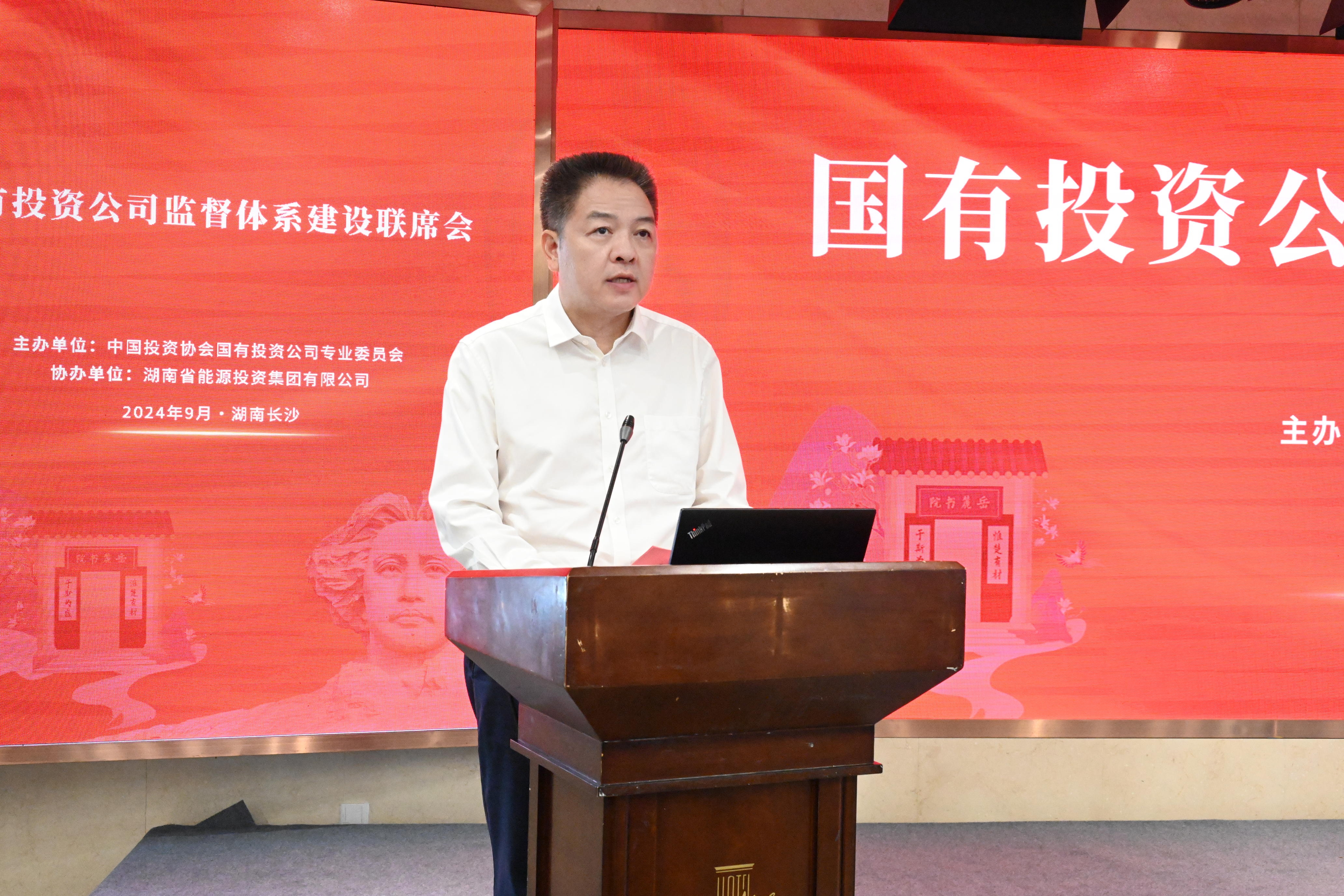 9月25日,由中国投资协会国有投资公司专业委员会(以下简称“国投委”)主办、湖南省能源投资集团有限公司(以下简称“湖南能源集团”)协办的国有投资公司监督体系建设联席会在长沙举办。湖南能源集团党委书记、董事长李勇出席会议并致辞,国投委秘书长黄新民主持会议,集团党委副书记,职工董事易向辉出席会议。