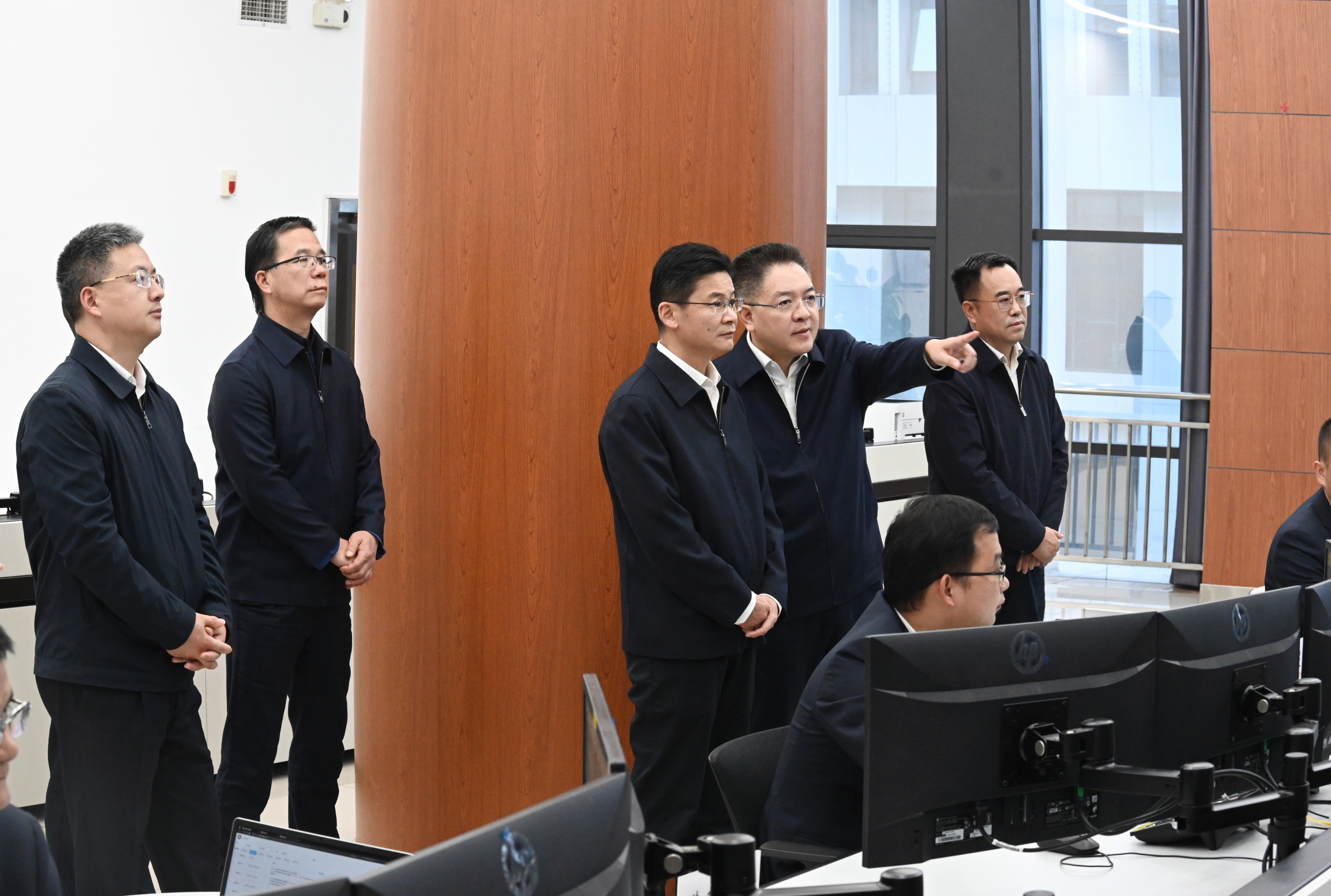 在湖南能源集团能源集控中心,曹志强详细询问企业发展、能源保供、安全生产等情况,察看集团发电企业集控调度平台和煤业安全生产管控平台运行情况。